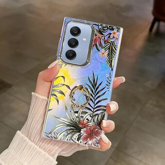 For Samsung Galaxy A25 5G Electroplating Laser Flower Ring Holder TPU Phone Case(Leaves AH12)