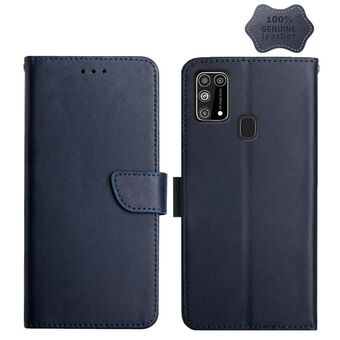 For Samsung Galaxy M31 Genuine Leather Fingerprint-proof Horizontal Flip Phone Case(Blue)