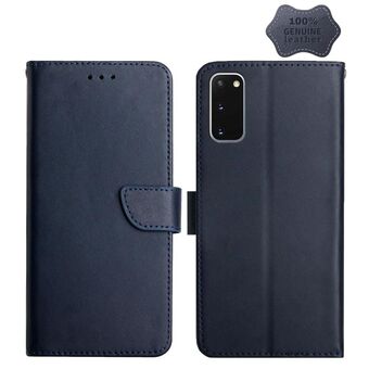 For Samsung Galaxy S20 Genuine Leather Fingerprint-proof Horizontal Flip Phone Case(Blue)