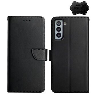 For Samsung Galaxy S21 FE 5G Genuine Leather Fingerprint-proof Horizontal Flip Phone Case(Black)