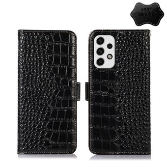For Samsung Galaxy A53 5G Crocodile Top Layer Cowhide Leather Phone Case(Black)