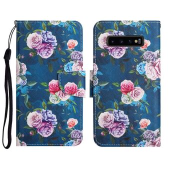 For Samsung Galaxy S10+ Painted Pattern Horizontal Flip Leather Case with Holder & Card Slot & Wallet(Rose Flower)