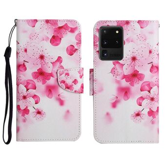 For Samsung Galaxy S20 Ultra Painted Pattern Horizontal Flip Leather Case with Holder & Card Slot & Wallet(Red Cherry Blossoms)