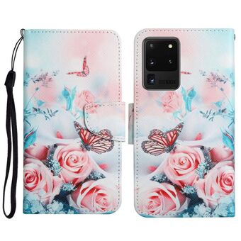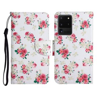For Samsung Galaxy S20 Ultra Painted Pattern Horizontal Flip Leather Case with Holder & Card Slot & Wallet(Rose Flower)