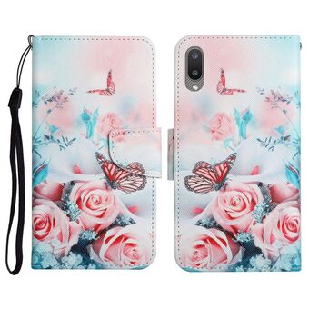 For Samsung Galaxy A02 Painted Pattern Horizontal Flip Leather Case with Holder & Card Slot & Wallet(Rose Flower)