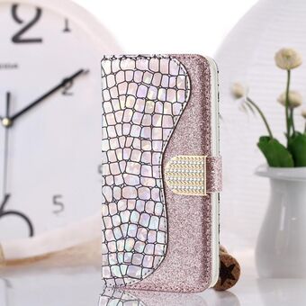 For Samsung Galaxy A12 Laser Glitter Powder Matching Crocodile Texture Horizontal Flip Leather Case with Card Slots & Holder & Wallet(Silver)