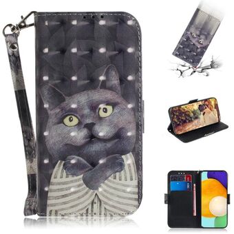 For Samsung Galaxy A52 5G / 4G 3D Painted Pattern Magnetic Attraction Horizontal Flip Leather Case with Holder & Card Slot & Wallet & Lanyard(Cute Cat)