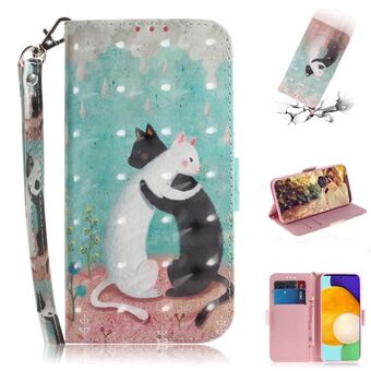 For Samsung Galaxy A52 5G / 4G 3D Painted Pattern Magnetic Attraction Horizontal Flip Leather Case with Holder & Card Slot & Wallet & Lanyard(Embrace Cat)