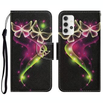 For Samsung Galaxy A32 5G Laser Glitter Powder Matching Crocodile Texture Horizontal Flip Leather Case with Card Slots & Holder & Wallet(Purple)