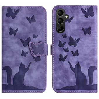 For Samsung Galaxy A24 4G Butterfly Cat Embossing Flip Leather Phone Case(Purple)