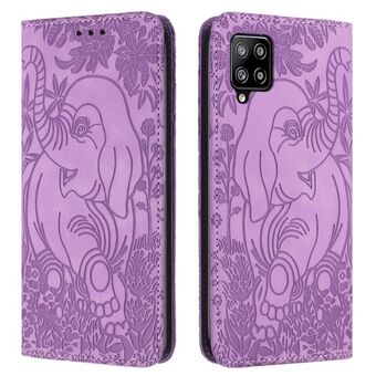For Samsung Galaxy A32 4G Retro Elephant Embossed Leather Phone Case(Purple)