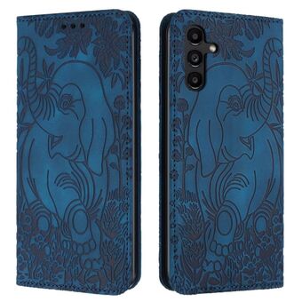 For Samsung Galaxy A13 4G / 5G Retro Elephant Embossed Leather Phone Case(Blue)