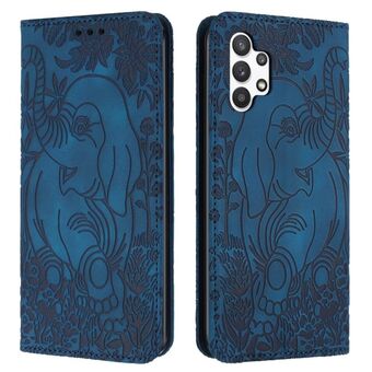 For Samsung Galaxy A32 4G Retro Elephant Embossed Leather Phone Case(Blue)