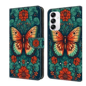 For Samsung Galaxy A14 5G Crystal Painted Leather Phone case(Flower Butterfly)