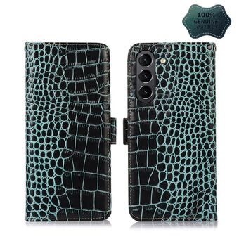 For Samsung Galaxy S21 FE 5G Crocodile Top Layer Cowhide Leather Phone Case(Green)