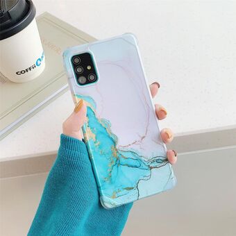 Four Corners Anti-Shattering Flow Gold Marble IMD Phone Back Cover Case For Samsung Galaxy A51(4G)(Light Blue DL6)