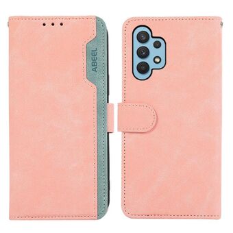 For Samsung Galaxy A32 4G ABEEL Color Block Magnetic RFID Leather Phone Case(Pink-Cyan)