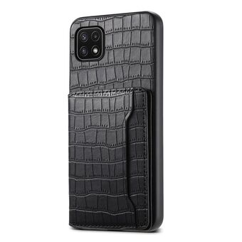 For Samsung Galaxy A22 5G Crocodile Texture Card Bag Design Full Coverage Phone Case(Black)