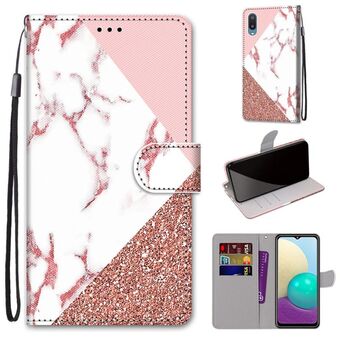 For Samsung Galaxy A02 / M02 Coloured Drawing Cross Texture Horizontal Flip PU Leather Case with Holder & Card Slots & Wallet & Lanyard(Pink Stone Texture)