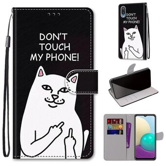 For Samsung Galaxy A02 / M02 Coloured Drawing Cross Texture Horizontal Flip PU Leather Case with Holder & Card Slots & Wallet & Lanyard(Middle Finger White Cat)