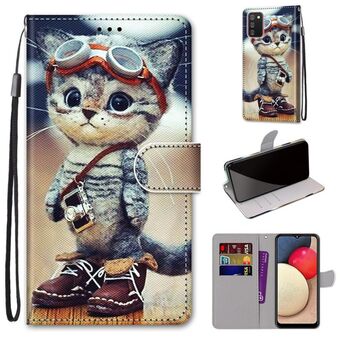 For Samsung Galaxy A02s / M02s Coloured Drawing Cross Texture Horizontal Flip PU Leather Case with Holder & Card Slots & Wallet & Lanyard(Leather Shoes Cat)