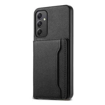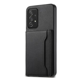 For Samsung Galaxy A52 5G Calf Texture Card Bag Design Full Coverage Phone Case(Black)