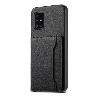 For Samsung Galaxy A51 4G Calf Texture Card Bag Design Full Coverage Phone Case(Black)