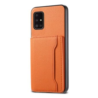 For Samsung Galaxy A51 4G Calf Texture Card Bag Design Full Coverage Phone Case(Orange)