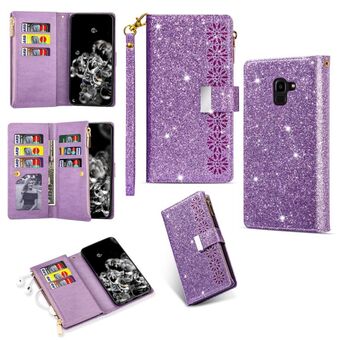 For Samsung Galaxy J6 (2018) Multi-card Slots Starry Sky Laser Carving Glitter Zipper Horizontal Flip Leather Case with Holder & Wallet & Lanyard(Purple)