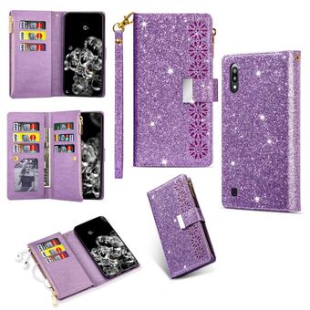 For Samsung Galaxy M10 / A10 Multi-card Slots Starry Sky Laser Carving Glitter Zipper Horizontal Flip Leather Case with Holder & Wallet & Lanyard(Purple)