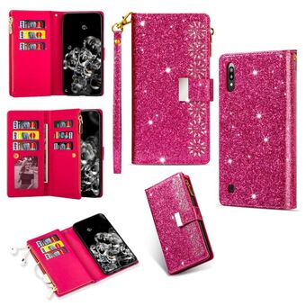 For Samsung Galaxy M10 / A10 Multi-card Slots Starry Sky Laser Carving Glitter Zipper Horizontal Flip Leather Case with Holder & Wallet & Lanyard(Rose Red)