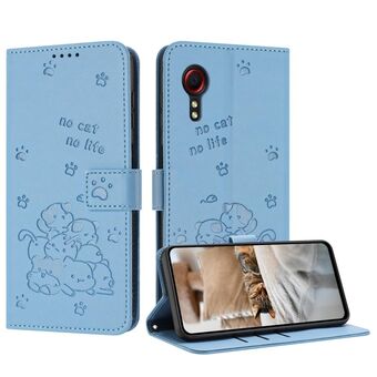 For Samsung Galaxy XCover 7 Embossed Kitten Phone Leather Case with Lanyard(Blue)
