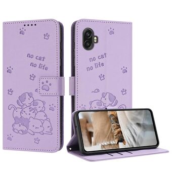 For Samsung Galaxy XCover6 Pro Embossed Kitten Phone Leather Case with Lanyard(Purple)