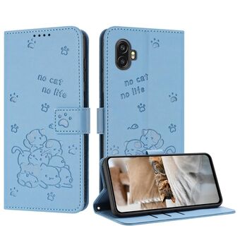 For Samsung Galaxy XCover6 Pro Embossed Kitten Phone Leather Case with Lanyard(Blue)