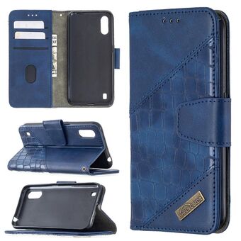 For Samsung Galaxy A01 Matching Color Crocodile Texture Horizontal Flip PU Leather Case with Wallet & Holder & Card Slots(Blue)