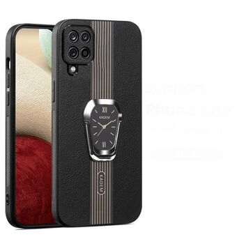 For Samsung Galaxy A12 4G Magnetic Litchi Leather Back Phone Case with Holder(Black)
