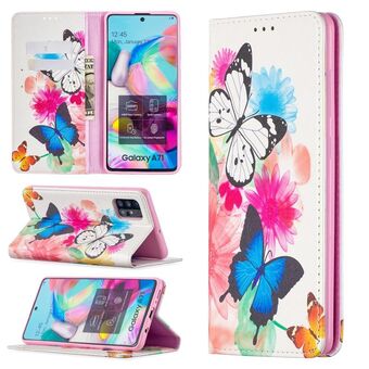 For Samsung Galaxy A71 Colored Drawing Pattern Invisible Magnetic Horizontal Flip PU Leather Case with Holder & Card Slots & Wallet(Two Butterflies)