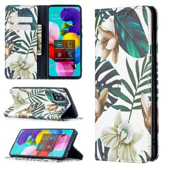 For Samsung Galaxy A51 Colored Drawing Pattern Invisible Magnetic Horizontal Flip PU Leather Case with Holder & Card Slots & Wallet(Blue Leaf)