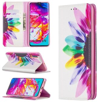 For Samsung Galaxy A70 Colored Drawing Pattern Invisible Magnetic Horizontal Flip PU Leather Case with Holder & Card Slots & Wallet(Sun Flower)