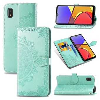 For Samsung Galaxy A21 (JP Version) Mandala Flower Embossed Horizontal Flip Leather Case with Bracket / Card Slot / Wallet / Lanyard(Green)
