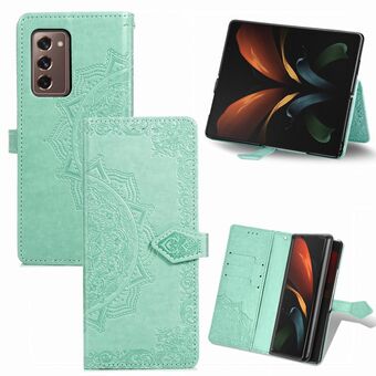 For Samsung Galaxy Z Fold2 Mandala Flower Embossed Horizontal Flip Leather Case with Bracket / Card Slot / Wallet / Lanyard(Green)