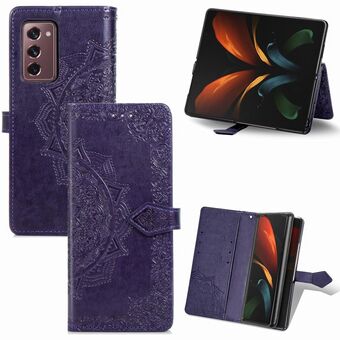 For Samsung Galaxy Z Fold2 Mandala Flower Embossed Horizontal Flip Leather Case with Bracket / Card Slot / Wallet / Lanyard(Purple)