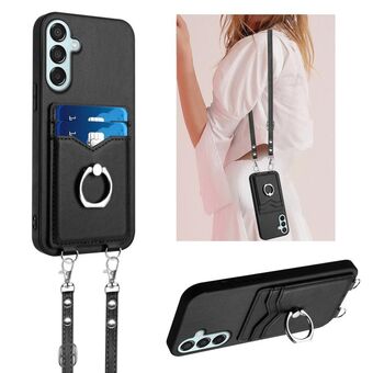 For Samsung Galaxy F04 4G R20 Crossbody Rope Ring Card Holder Phone Case(Black)