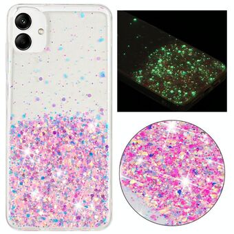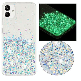 For Samsung Galaxy A04S Transparent Frame Noctilucent Glitter Powder TPU Phone Case(Green)