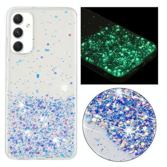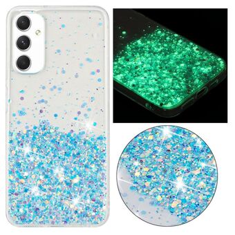 For Samsung Galaxy A05s Transparent Frame Noctilucent Glitter Powder TPU Phone Case(Blue)
