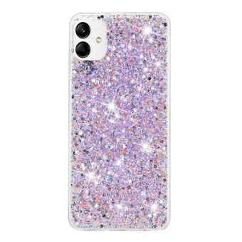 For Samsung Galaxy A05 Transparent Frame Glitter Powder TPU Phone Case(Purple)