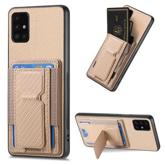 For Samsung Galaxy A51 5G Carbon Fiber Fold Stand Elastic Card Bag Phone Case(Brown)