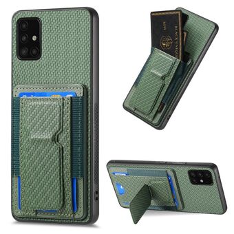 For Samsung Galaxy A51 5G Carbon Fiber Fold Stand Elastic Card Bag Phone Case(Black)