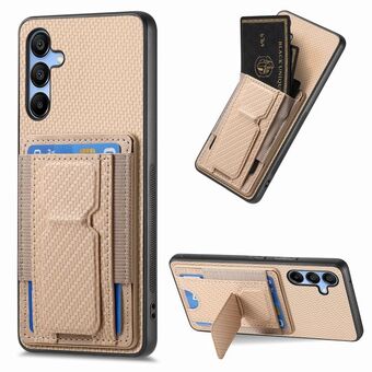For Samsung Galaxy A13 5G Carbon Fiber Fold Stand Elastic Card Bag Phone Case(Khaki)