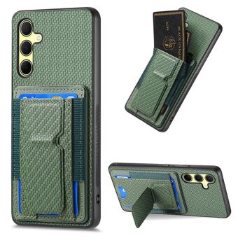 For Samsung Galaxy A34 5G Carbon Fiber Fold Stand Elastic Card Bag Phone Case(Green)